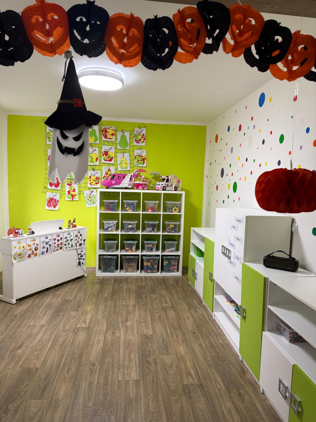 První podzimní dny jsme si v naší školce Motýlek užili opravdu kreativně! Společně s dětmi jsme se pustili do halloweenského tvoření a výsledek stojí za to. Naše prostory se proměnily v kouzelné strašidelné království plné dýní, pavouků a veselých příšerek.