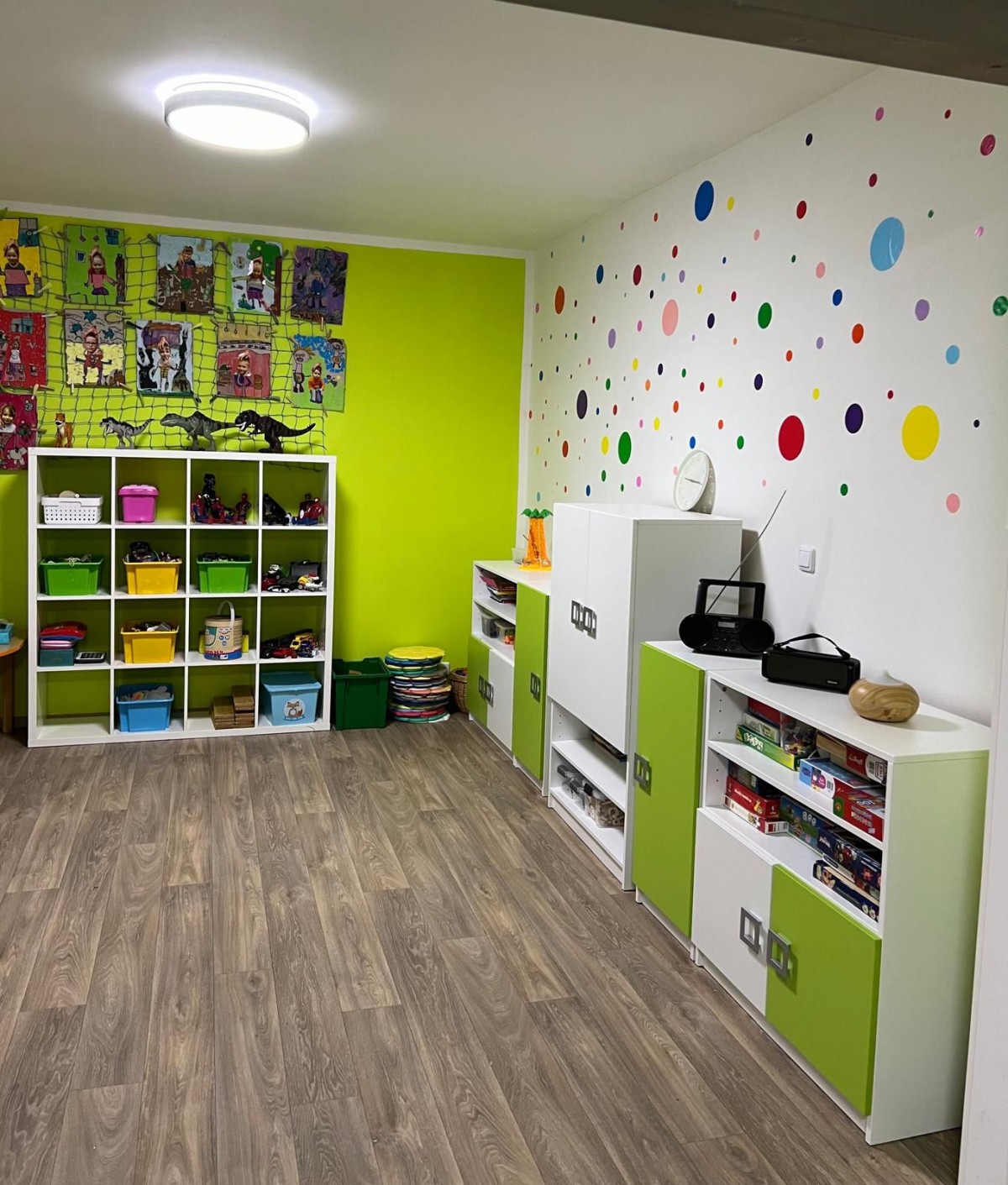 Vybavení naší školky je zcela nové a moderní, přizpůsobené potřebám dětí.